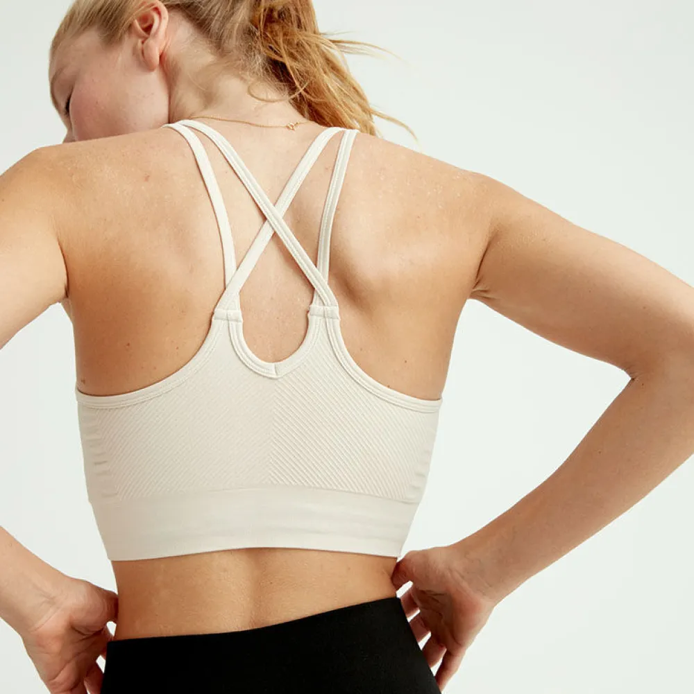 Superkomfortabel sportsbh med lett til medium støtte. Med en myk, sømløs passform og bred strikk passer den perfekt for yoga, pilates og styrketerning. Laget med resirkulerte materialer!