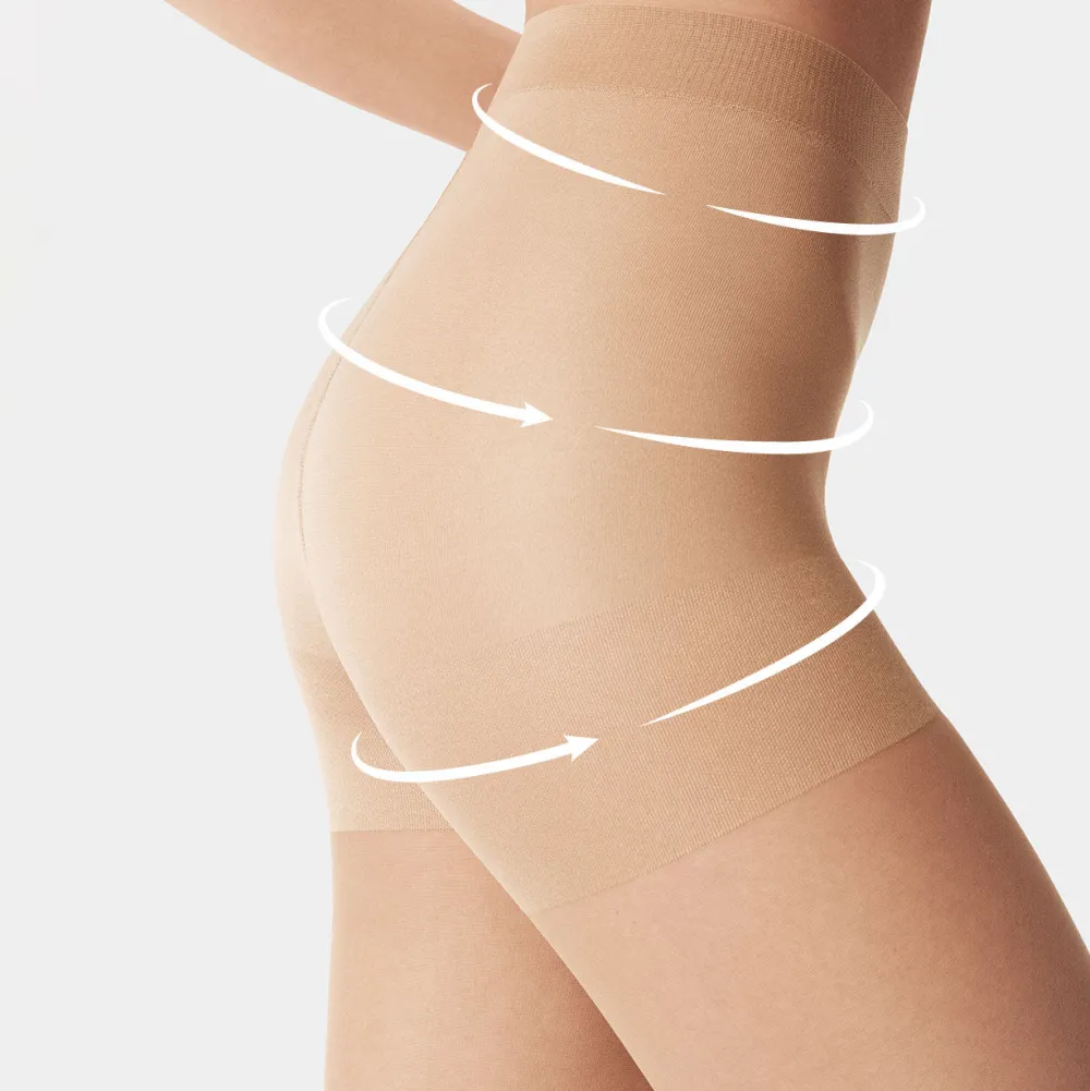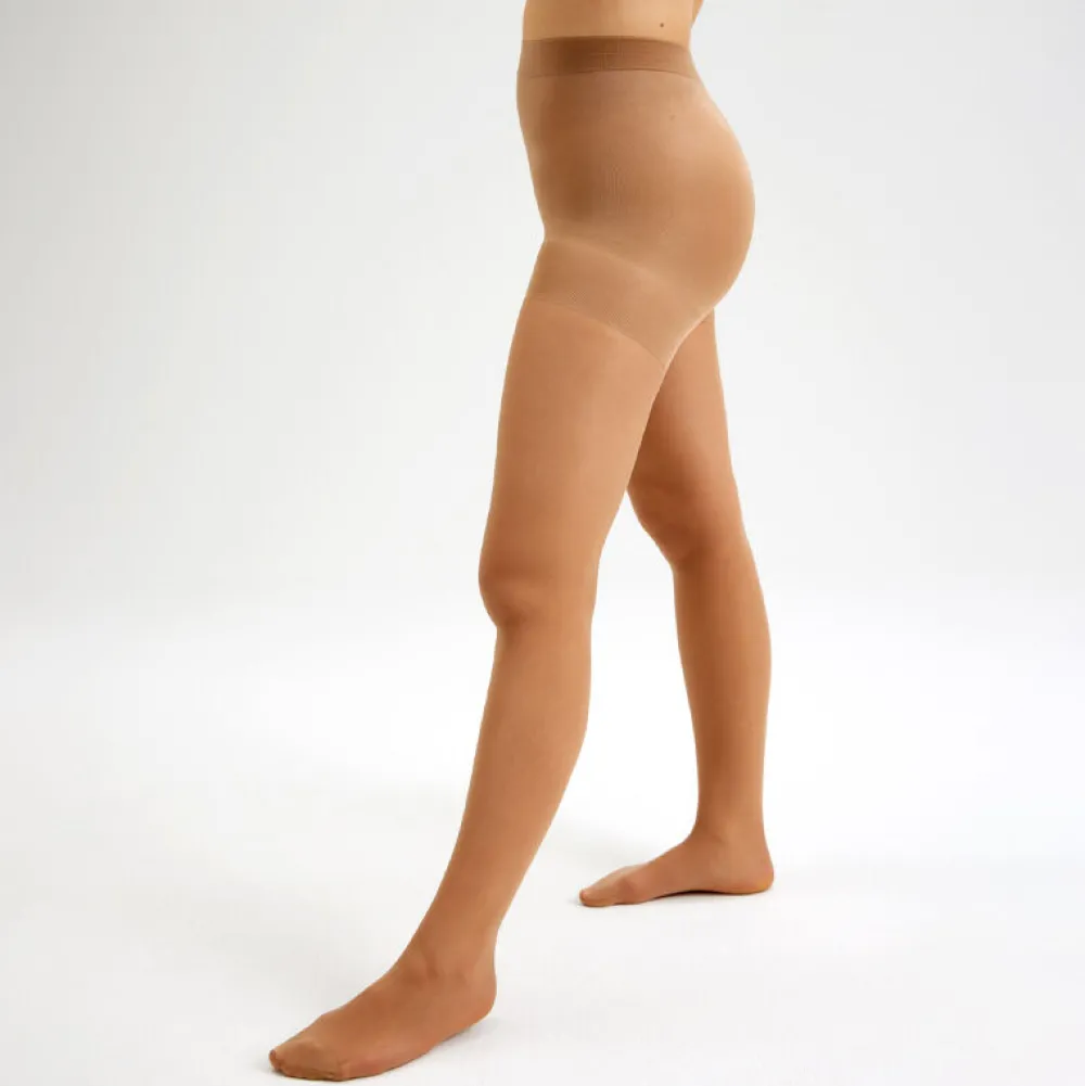 Våre 20 denier hold-in strømpebukse former og støtter midjen, hoftene og lårene. Disse tightsene har en fin matt finish, en myk linning og en bomullskile. Laget for å brukes om igjen.