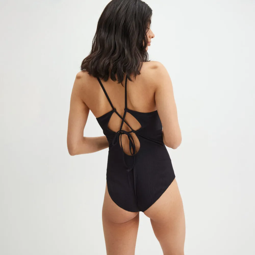 Sort badedrakt: Modellen er 177cm, og har på seg en størrelse M.