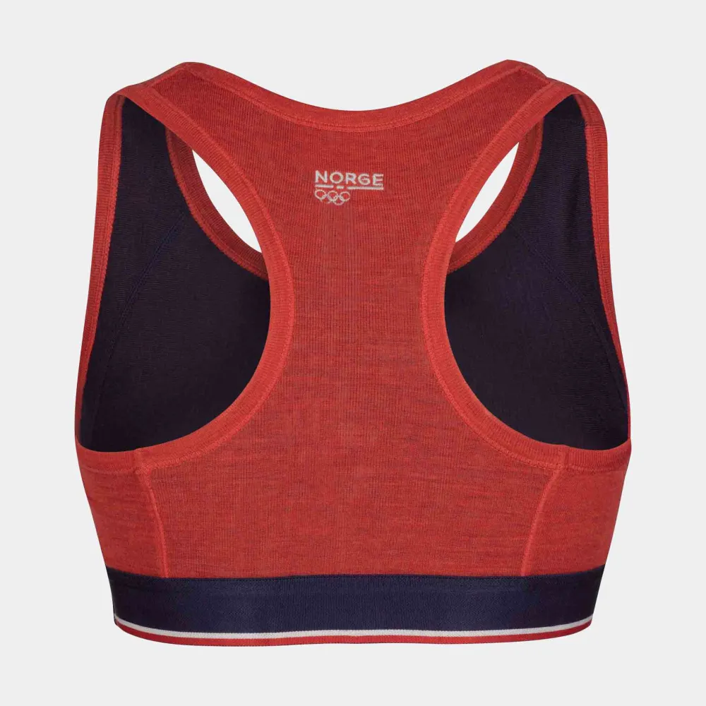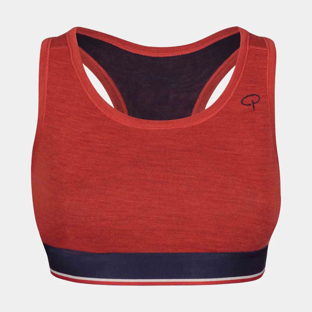 Svanemerket Sports-BH i myk merinoull og naturmaterialet Tencel (farge: Black Melange og Light Mahogany) / resirkulert polyester (farge Khaki, Navy Melange og OL Red Mel.). BH’en kommer med bryterrygg og medium hold. Formsydd og spileløs for max komfort og en naturlig feminin silhuett.