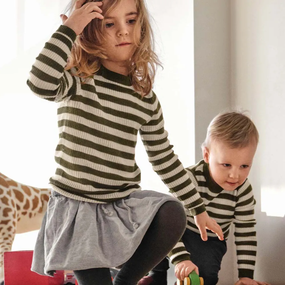 Ull er gull for familiens minste medlemmer. Myk ulltrøye i 55% Svanemerket merinoull og 45% Tencel™. Ribbestrikket med lange ermer, og like fin alene som under andre plagg.