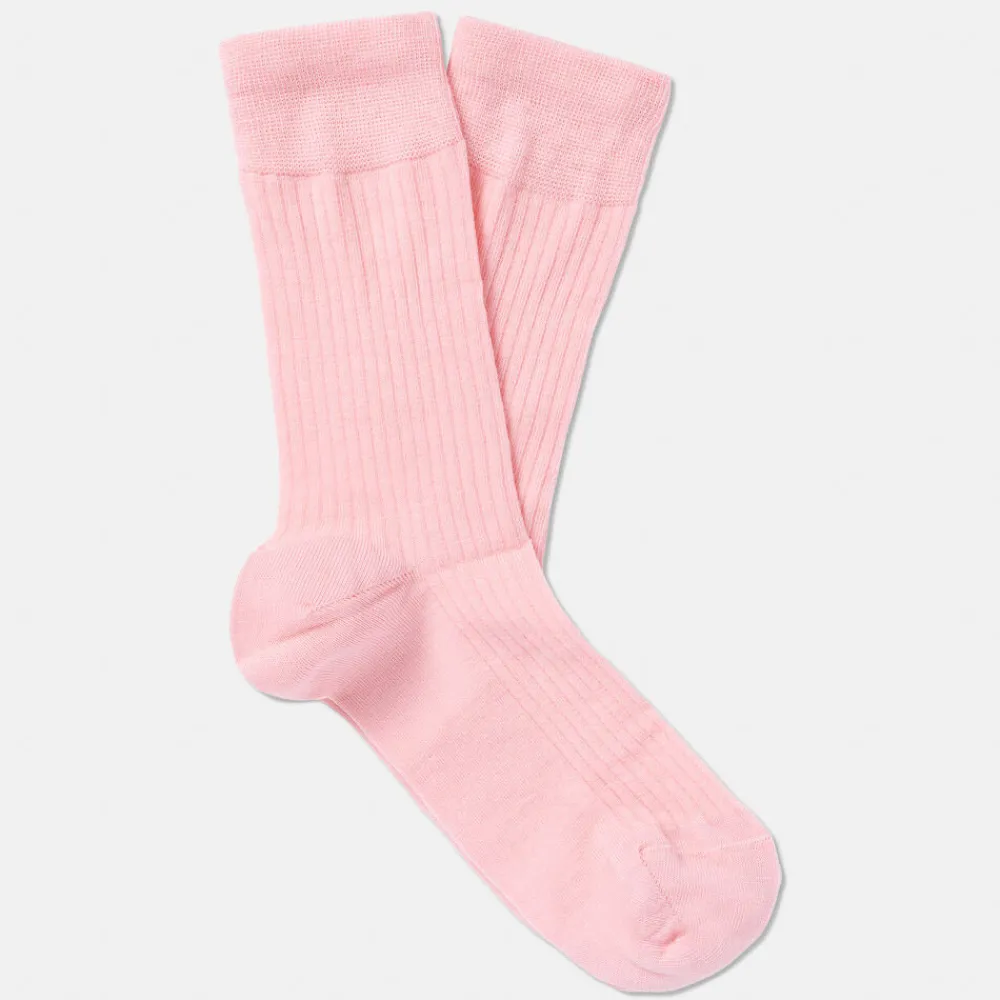 Ribbestrikkede sokker i myk, svanemerket merinoull, designet i samarbeid med stilikonet Janka Polliani.