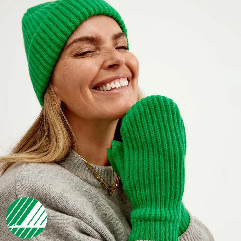 Votter designet i samarbeid med stilikonet Janka Polliani. Ribbestrikket i 100% svanemerket merinoull. Vottene har en bred, strammere kant rundt håndleddet slik at vottene sitter godt og behagelig på.