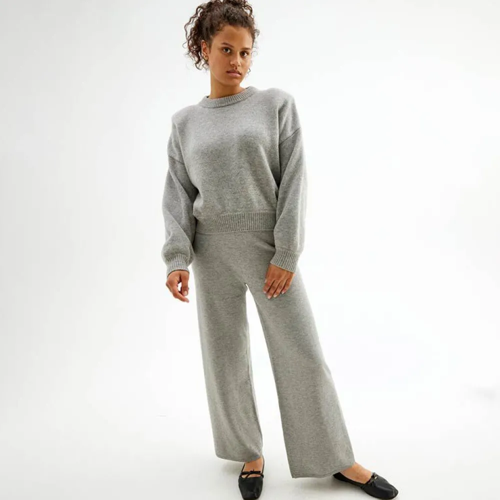Grå bukse: Modell 1 er 180 cm og har på seg en størrelse M. Modell 2 er 173 cm og har på seg en størrelse S.